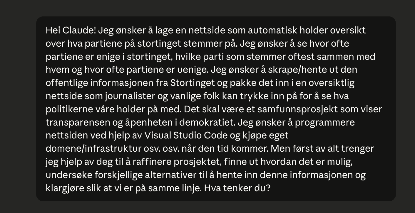 Full disclosure, men Claude er defintivt min favorittmodell. Det er den jeg bruker mest, både til skole, jobb, hverdag og annet. Jeg elsker